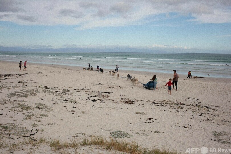 【11月22日 AFP】南アフリカ・ケープタウン郊外のミューゼンバーグ(Muizenberg)は、金色に輝く砂浜、カラフルなビーチ小屋、最高のサーフィン体験など見どころ満載の人気スポットだが、ここにはさらに唯一無二の名物がある。最大30匹のハスキー犬が引く犬ぞりだ。