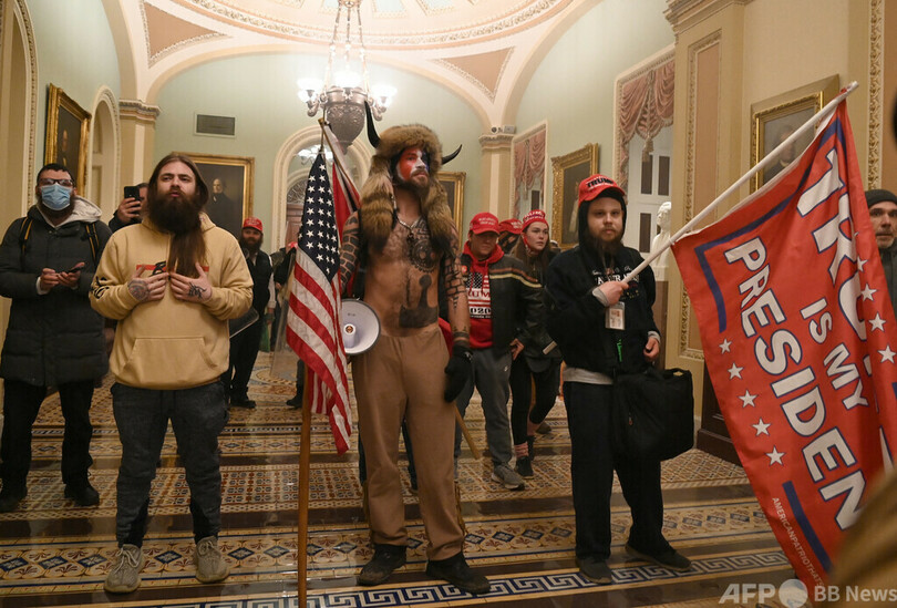 【11月18日 AFP】米国で今年1月に起きたドナルド・トランプ(Donald Trump)前大統領支持者による連邦議会襲撃事件で、上半身裸で角つきの毛皮帽子をかぶり議会に乱入した自称「シャーマン」の男に対し、裁判所は17日、禁錮3年5月の刑を言い渡した。