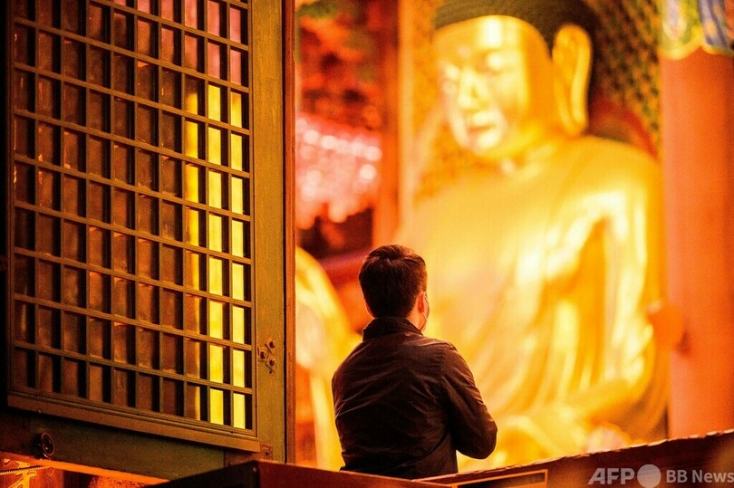 前夜には首都ソウルの曹渓寺(Jogyesa)で、合格を祈願する人々の姿が見られた。(c)AFP