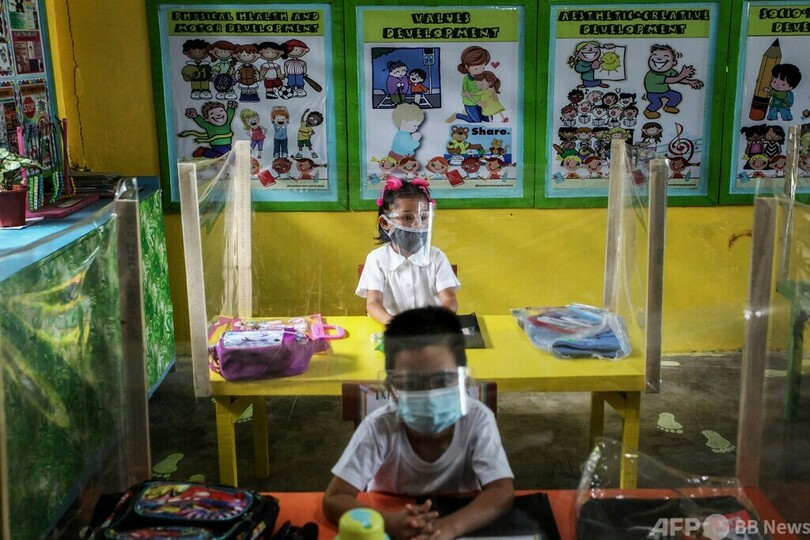 【今日の1枚】机に仕切り、コロナ禍で久しぶりの学校 フィリピン