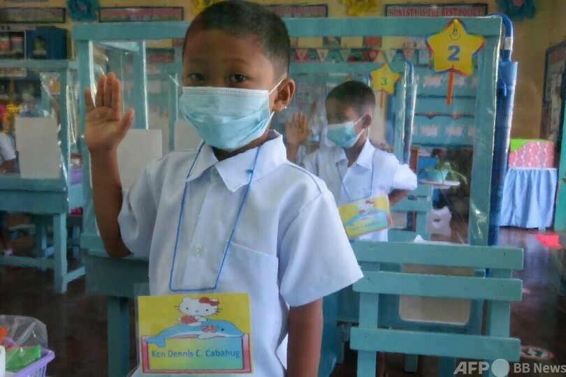 【今日の1枚】机に仕切り、コロナ禍で久しぶりの学校 フィリピン