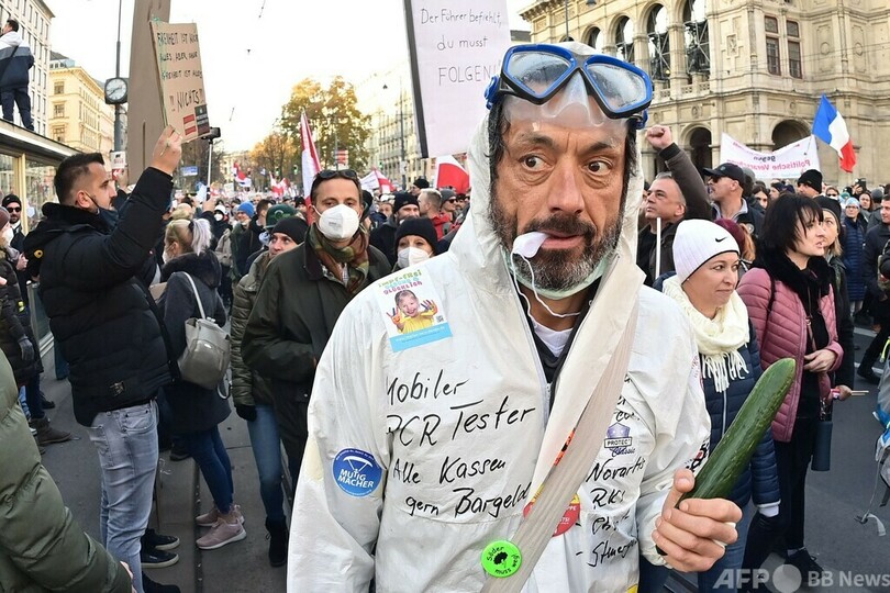 オーストリアでは、約4000人が抗議デモに参加した。ウィーンで行われたデモで参加者は「コロナ独裁」や「社会の分断」などと書かれたプラカードを掲げていた。中にはナチス・ドイツ(Nazi)がユダヤ人に着用させた「ダビデの星(Star of David)」を思わせる黄色い星に「ワクチン未接種」と書かれたワッペンを着けた人もいた。
