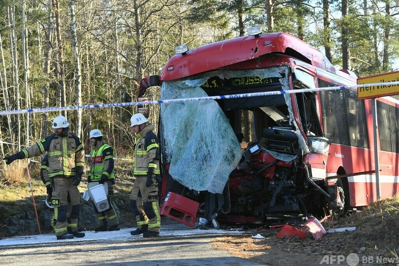 ニュース 社会 バスとレッカー車衝突、20人負傷 スウェーデン 2021年11月23日 12:05 発信地:バルムド/スウェーデン [ スウェーデン ヨーロッパ ] このニュースをシェア ‹ › ❮ 3/6 ❯ スウェーデンのストックホルム郊外バルムドで発生したバスとレッカー車の衝突事故の現場の様子(2021年11月22日撮影)。(c)Fredrik SANDBERG / TT News Agency / AFP 画像作成中 ! 【11月23日 AFP】スウェーデンのストックホルム郊外バルムド(Varmdo)で22日、バスとレッカー車が衝突し、約20人が負傷した。(c)AFP 社会 一覧へ> メディア・報道関係・法人の方向け 写真・動画 購入のお問合せ>
