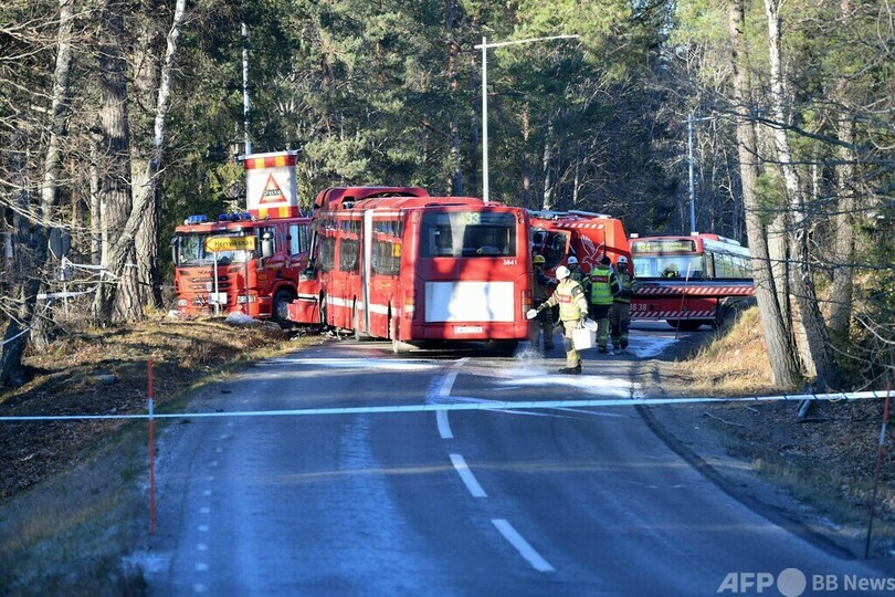 ニュース 社会 バスとレッカー車衝突、20人負傷 スウェーデン 2021年11月23日 12:05 発信地:バルムド/スウェーデン [ スウェーデン ヨーロッパ ] このニュースをシェア ‹ › ❮ 2/6 ❯ スウェーデンのストックホルム郊外バルムドで発生したバスとレッカー車の衝突事故の現場の様子(2021年11月22日撮影)。(c)Fredrik SANDBERG / TT News Agency / AFP 画像作成中 ! 【11月23日 AFP】スウェーデンのストックホルム郊外バルムド(Varmdo)で22日、バスとレッカー車が衝突し、約20人が負傷した。(c)AFP 社会 一覧へ> メディア・報道関係・法人の方向け 写真・動画 購入のお問合せ>