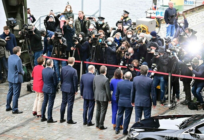 3党が24日に発表した連立協定には、コロナ対策の他、石炭火力発電からの撤退を2038年から30年に前倒しする計画、憲法で定められた債務上限を23年に復活させる公約、嗜好(しこう)用大麻の合法化などの主要政策が盛り込まれた。(c)AFP/Hui Min NEO