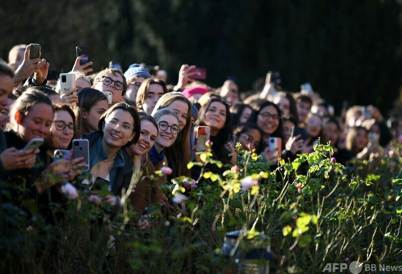 【12月1日 AFP】英イングランド東部にあるケンブリッジ大学(University of Cambridge)ホマートンカレッジ(Homerton College)で、チャールズ皇太子(Prince Charles)を一目見ようと詰め掛けた学生ら。皇太子は、教育へのアクセスや、さまざまな背景を持つ学生を受け入れる大学の構想について知るために同校を訪れた。(c)AFP