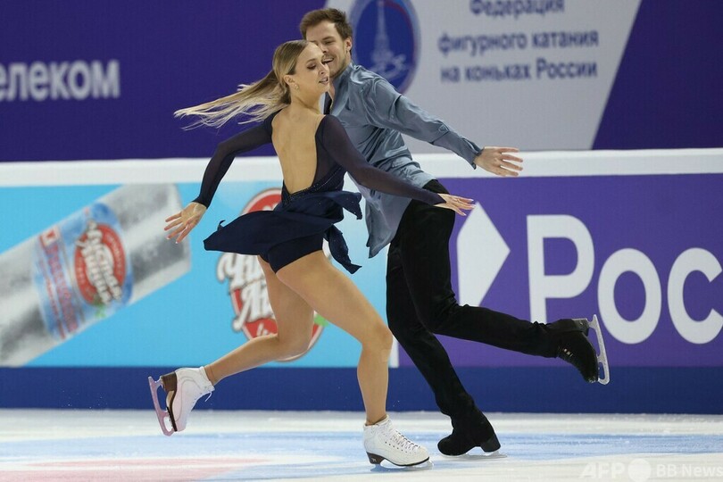ペアはアナスタシヤ・ミーシナ(Anastasia Mishina)/アレクサンドル・ガリアモフ(Aleksandr Galliamov)組、アイスダンスはヴィクトリヤ・シニツィナ(Victoria Sinitsina)/ニキータ・カツァラポフ(Nikita Katsalapov)組という世界選手権(ISU World Figure Skating Championships 2021)を制しているロシア勢がそれぞれ優勝した。(c)AFP