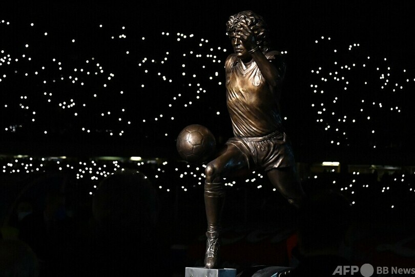 10という数字の上で躍動するマラドーナ氏の銅像がピッチに運ばれると、ファンはその名を叫んだ。