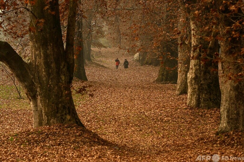 【11月30日 AFP】インド・カシミール(Kashmir)地方のスリナガル(Srinagar)にある庭園ニシャット・バーグ(Nishat Bagh)では、木々が葉を落とし、地面が枯れ葉に覆われている。散策したり寝転がったり、晩秋の庭園を楽しむ人々の姿が見られた。(c)AFP