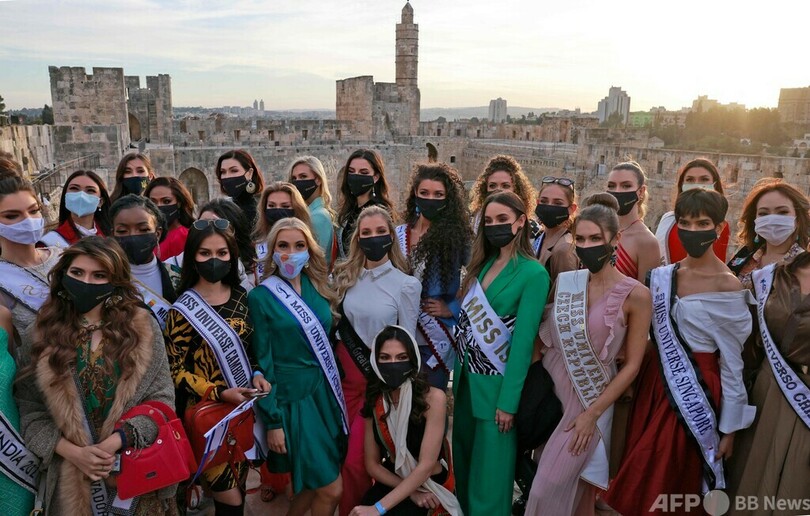 【12月1日 AFP】第70回ミス・ユニバース(Miss Universe)世界大会に出場する、国や地域の代表が先月30日、エルサレム(Jerusalem)旧市街(Old City)のダビデの塔(Tower of David)を訪れ、周囲の景色を楽しんだり、写真撮影をしたりした。夜には旧市街の壁に世界の旗が投影された。