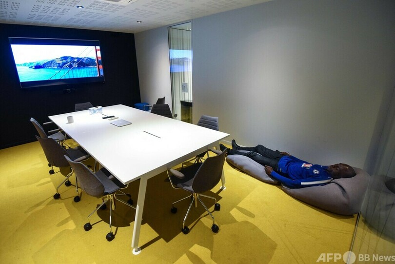 この企業を経営するピエールイブ・ロアエク(Pierre-Yves Loaec)氏のアイデアから生まれた団体「ビューロー・ドゥ・クール」(心のオフィスの意)を通じ、現在ナントなどフランスのいくつかの都市で38人が企業から提供された業務時間外のオフィスの一角で寝泊まりしている。(c)AFP