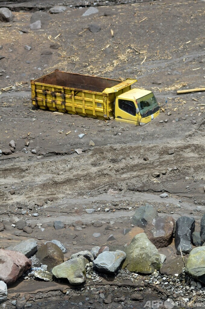 【12月3日 AFP】インドネシア・ジャワ(Java)島にある同国で最も活発な火山、ムラピ山(Mount Merapi)で、豪雨で山腹から麓に押し流された火山灰にトラックが埋もれ、2日になっても動かせない状態が続いていた。(c)AFP