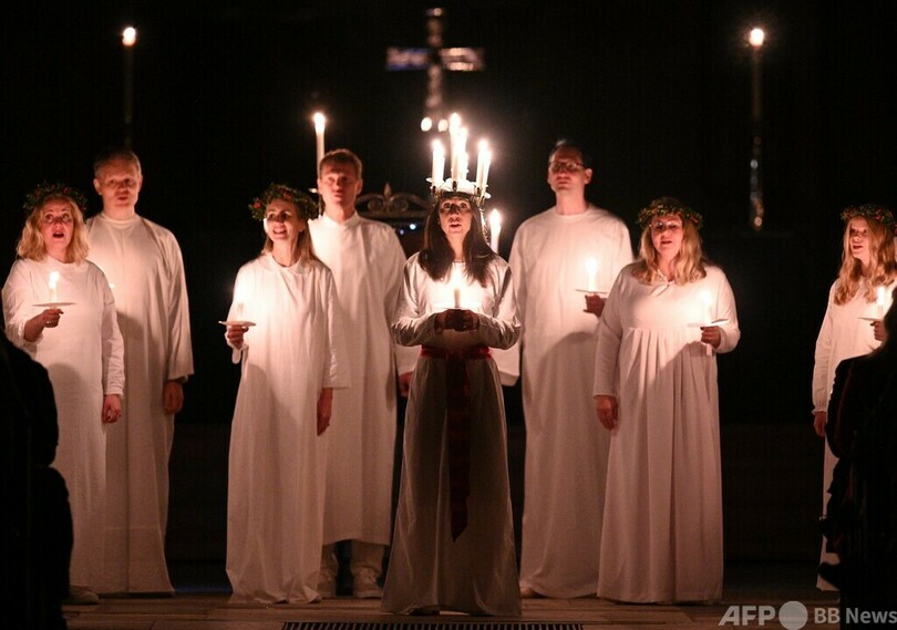 【12月4日 AFP】英国イングランド北部ヨーク(York)で3日、スウェーデンの伝統行事「聖ルチア祭(Sankta Lucia Festival of Light)」が行われた。