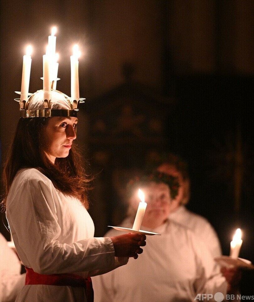 【12月4日 AFP】英国イングランド北部ヨーク(York)で3日、スウェーデンの伝統行事「聖ルチア祭(Sankta Lucia Festival of Light)」が行われた。