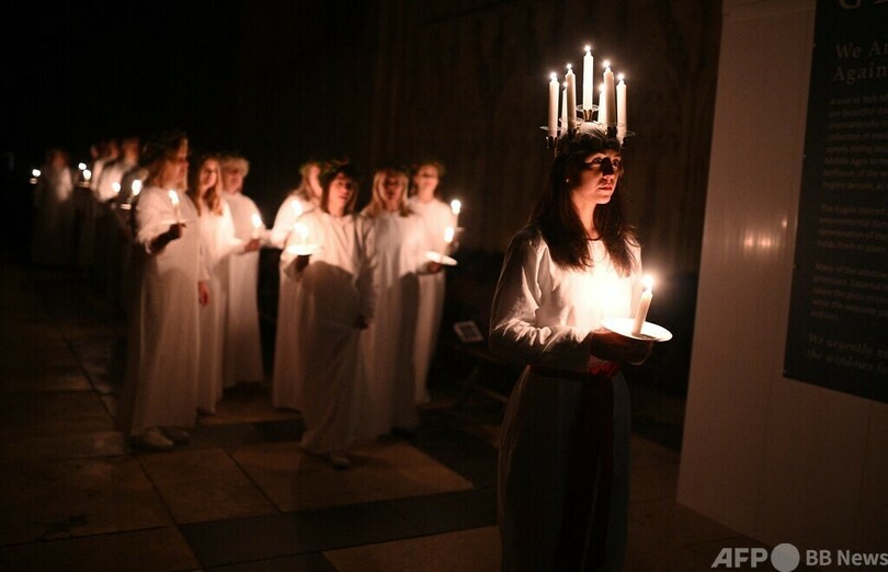 【12月4日 AFP】英国イングランド北部ヨーク(York)で3日、スウェーデンの伝統行事「聖ルチア祭(Sankta Lucia Festival of Light)」が行われた。