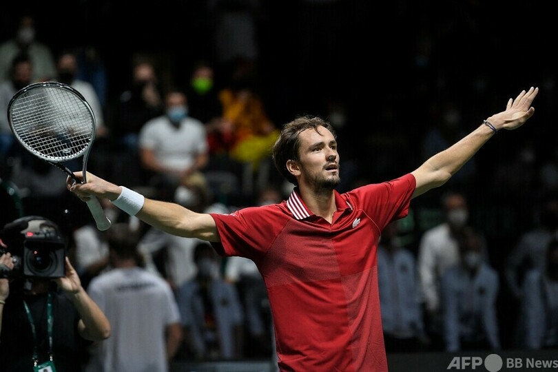 【12月5日 AFP】男子テニスの国別対抗戦デビスカップ(Davis Cup 2020-21)は4日、スペイン・マドリードで決勝ラウンドの準決勝が行われ、ロシアテニス連盟(RTF)は2勝1敗でドイツに勝利。ダニール・メドベージェフ(Daniil Medvedev)が第2試合のシングルスを制して決勝進出を決めた。