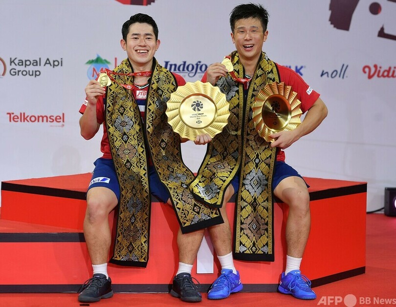 【12月6日 AFP】バドミントン、BWFワールドツアーファイナルズ(BWF World Tour Finals 2021)は5日、各種目の決勝が行われ、男子ダブルスの保木卓朗(Takuro Hoki)/小林優吾(Yugo Kobayashi)組が21-16、13-21、21-17で地元インドネシアのマーカス・フェルナルディ・ギデオン(Marcus Fernaldi Gideon)/ケビン・サンジャヤ・スカムルジョ(Kevin Sanjaya Sukamuljo)組を破り、優勝を飾った。