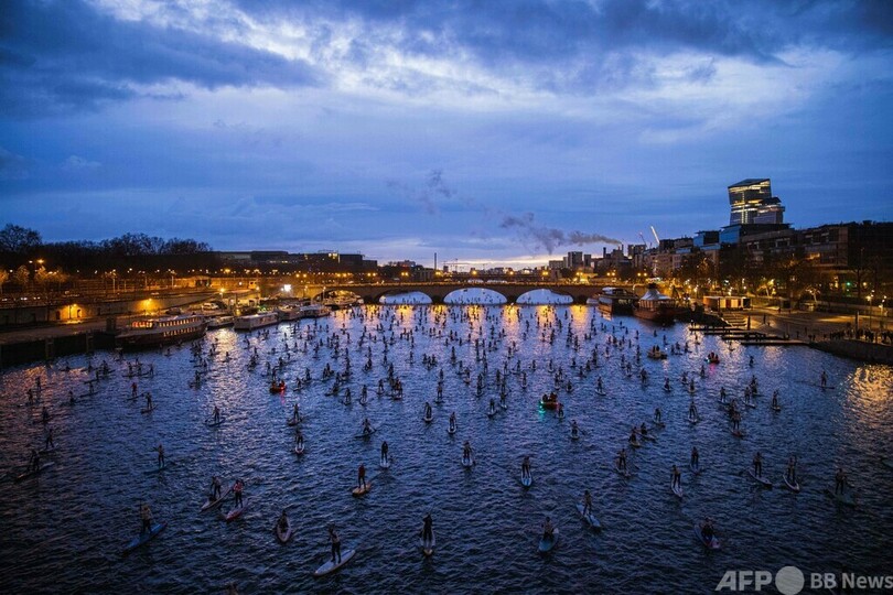 パリのセーヌ川でパドルレース、1000人参加