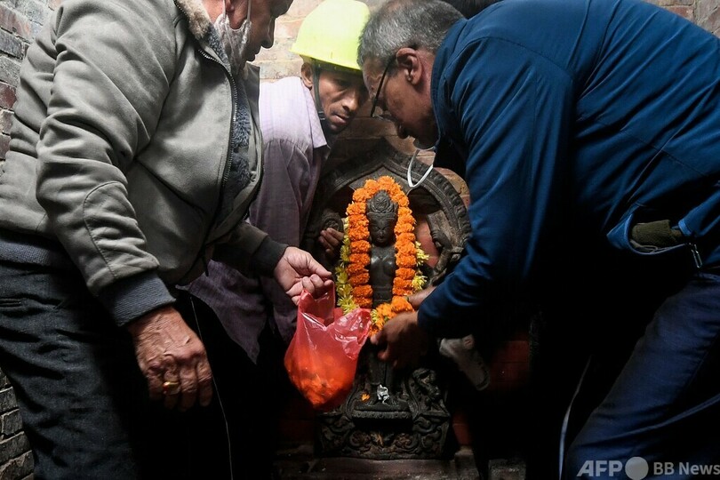 【12月7日 AFP】ネパールの首都カトマンズで4日、1984年に寺院から盗まれ、米国から返還されていたヒンズー教の神像が、元の場所に安置された。