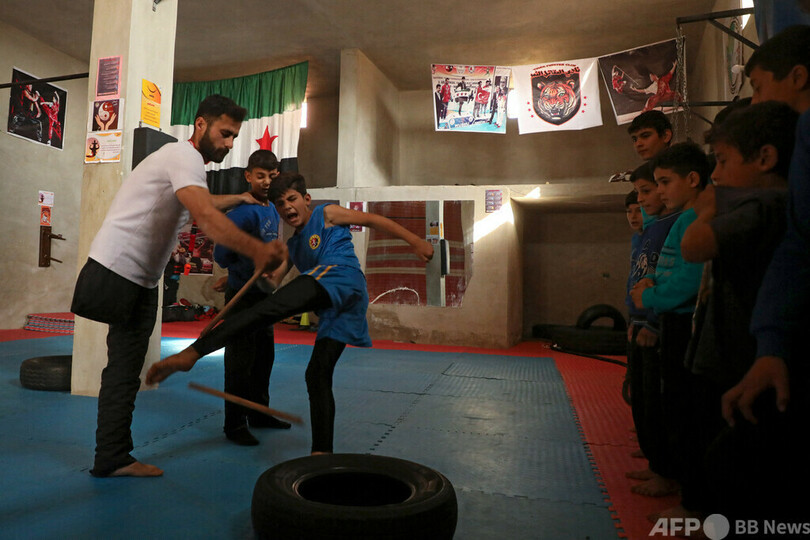 片脚のカンフーの使い手、内戦続くシリアで子どもに夢託す