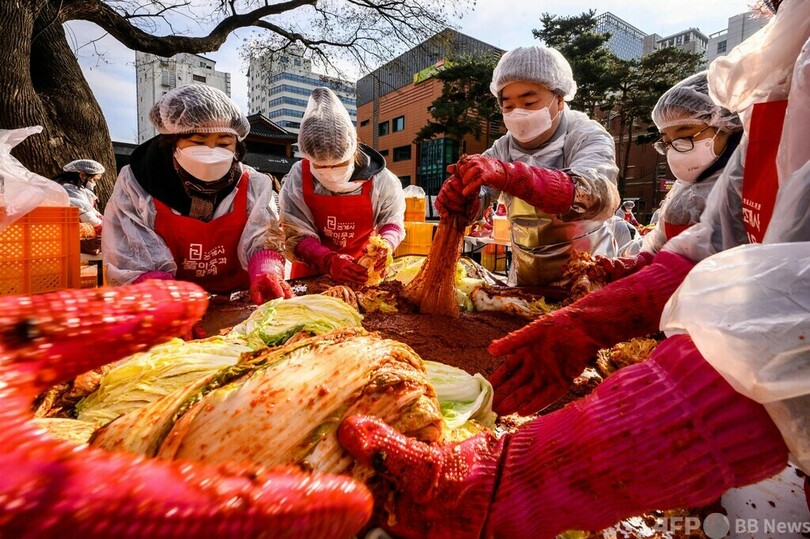 【12月13日 AFP】韓国・ソウルの曹渓寺(Jogyesa)で今月上旬、キムチ作りのイベントが開かれ、約150人の参加者が8000キロの白菜を漬け込んだ。できたキムチの半分は恵まれない家庭や高齢者に、残りは曹渓寺や仏教団体に渡る。(c)AFP