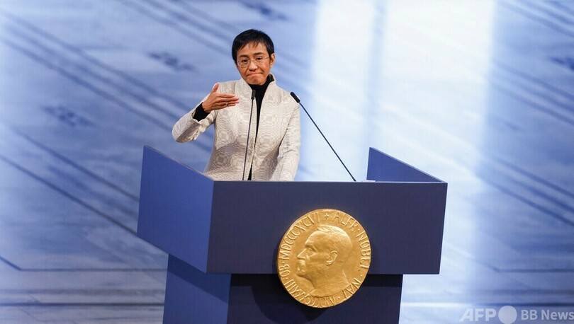 【12月11日 AFP】ノルウェーの首都オスロで10日、ノーベル平和賞(Nobel Peace Prize)の授賞式が行われ、フィリピンとロシアの著名ジャーナリスト、マリア・レッサ(Maria Ressa)氏(58)とドミトリー・ムラトフ(Dmitry Muratov)氏(60)に賞が授与された。レッサ氏は演説で、米大手IT企業がSNS上で「有毒なヘドロ」をまん延させていると非難した。