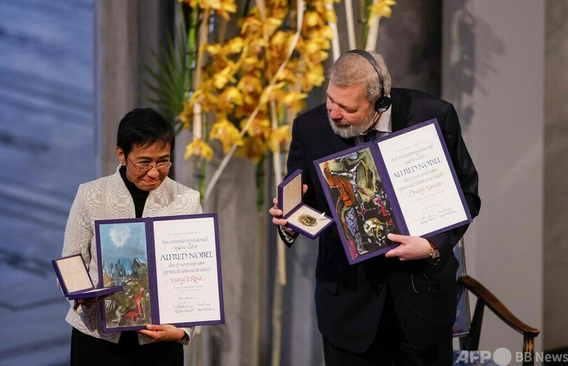 【12月11日 AFP】ノルウェーの首都オスロで10日、ノーベル平和賞(Nobel Peace Prize)の授賞式が行われ、フィリピンとロシアの著名ジャーナリスト、マリア・レッサ(Maria Ressa)氏(58)とドミトリー・ムラトフ(Dmitry Muratov)氏(60)に賞が授与された。レッサ氏は演説で、米大手IT企業がSNS上で「有毒なヘドロ」をまん延させていると非難した。