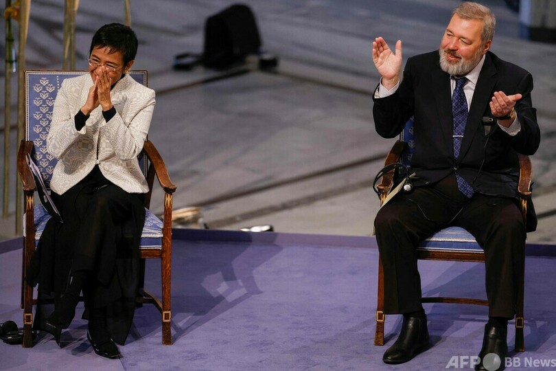 【12月11日 AFP】フィリピンのジャーナリスト、マリア・レッサ(Maria Ressa)氏と共同で今年のノーベル平和賞(Nobel Peace Prize)を受賞したロシアの独立系紙ノーバヤ・ガゼータ(Novaya Gazeta)のドミトリー・ムラトフ(Dmitry Muratov)編集長は10日、ノルウェーの首都オスロで開かれた授賞式での演説で、殉職したジャーナリストたちを追悼する1分間の黙とうを呼び掛けた。