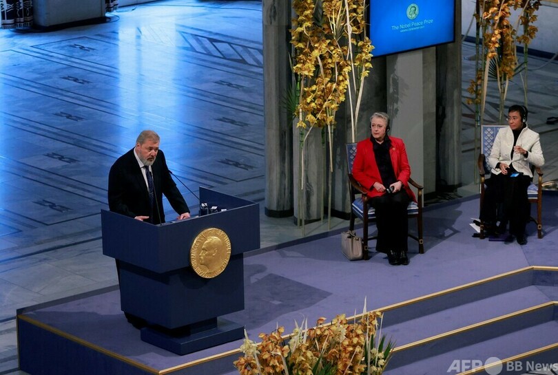 【12月11日 AFP】フィリピンのジャーナリスト、マリア・レッサ(Maria Ressa)氏と共同で今年のノーベル平和賞(Nobel Peace Prize)を受賞したロシアの独立系紙ノーバヤ・ガゼータ(Novaya Gazeta)のドミトリー・ムラトフ(Dmitry Muratov)編集長は10日、ノルウェーの首都オスロで開かれた授賞式での演説で、殉職したジャーナリストたちを追悼する1分間の黙とうを呼び掛けた。