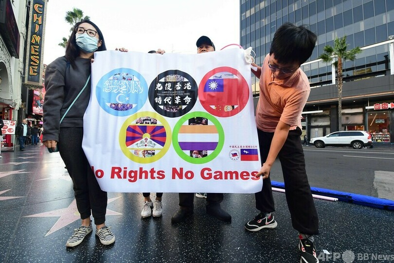 【12月11日 AFP】「世界人権デー(Human Rights Day)」に当たる10日、米カリフォルニア州ハリウッドで北京冬季五輪に反対するデモが行われ、参加者は中国当局による人権侵害に抗議するとともに、北京五輪のボイコットを訴えた。(c)AFP