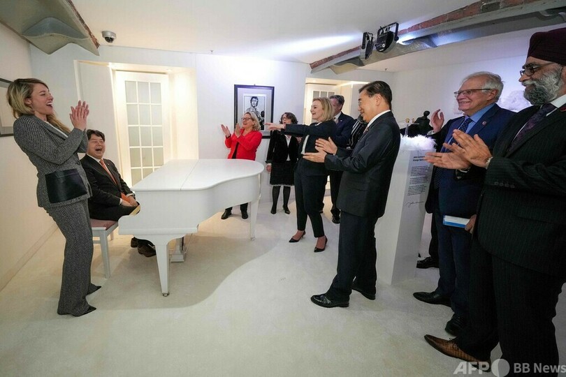 【12月12日 AFP】先進7か国(G7)外相会合で英中部リバプールを訪問中の林芳正(Yoshimasa Hayashi)外相は11日、夕食会が開かれたビートルズ・ストーリー博物館(The Beatles Story Museum)でジョン・レノン(John Lennon)さんの代表曲「イマジン(Imagine)」をピアノで演奏し、各国外相から拍手を送られた。(c)AFP