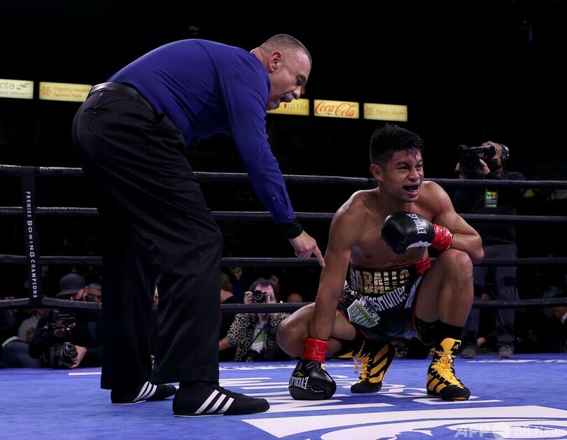 39歳のドネアが4回終盤に強烈な左フックをボディーに打ち込むと、25歳のガバリョは数秒間片膝をついた。一瞬立ち上がろうとしたガバリョだったが、再びしゃがみ込んで顔をゆがませると、レフェリーはこのラウンド残り数秒のところで試合を止めた。