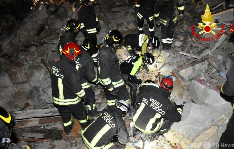 ニュース 社会 爆発でアパート複数倒壊、3人死亡 伊シチリア島 2021年12月12日 19:37 発信地:ローマ/イタリア [ イタリア ヨーロッパ ] このニュースをシェア ‹ › ❮ 3/8 ❯ アパートが爆発により倒壊した現場。伊シチリア島ラバヌーザで(2021年12月12日撮影)。(c)Handout / Vigili del Fuoco / AFP 画像作成中 ! 【12月12日 AFP】イタリア南部シチリア(Sicily)島ラバヌーザ(Ravanusa)で11日、何らかの原因による爆発で複数のアパートが倒壊し、3人が死亡、6人が行方不明となった。 当局が12日、明らかにした。救助隊員や探知犬が不明者の捜索に当たっている。 地元テレビは、大量のがれきや木の梁(はり)、焦げて損傷した近隣の建物を映し出していた。 当局は、爆発の原因はガス漏れの可能性が高いとみて、調査を開始した。(c)AFP 社会 一覧へ> メディア・報道関係・法人の方向け 写真・動画 購入のお問合せ>