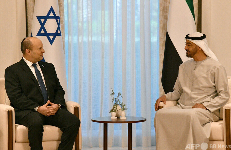 【12月13日 AFP】イスラエルのナフタリ・ベネット(Naftali Bennett)首相は13日、アラブ首長国連邦(UAE)を訪問し、アブダビ首長国のムハンマド・ビン・ザイド皇太子(Crown Prince Mohammed bin Zayed)と会談した。イスラエル首相のUAE訪問は史上初。