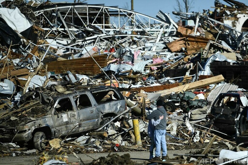 【12月14日 AFP】米南部・中西部6州を10日夜から11日未明にかけて襲った竜巻で、13日までに少なくとも88人の死亡が確認された。
