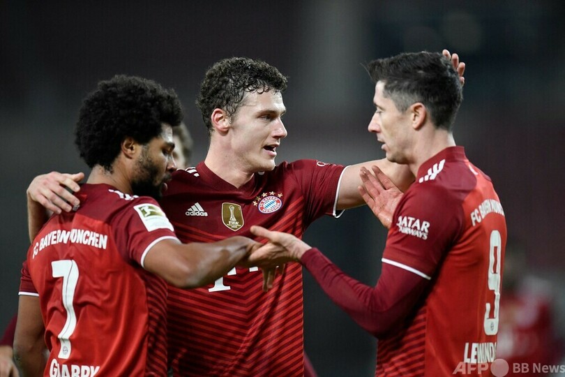 【12月15日 AFP】21-22ドイツ・ブンデスリーガ1部は14日、第16節の試合が行われ、首位バイエルン・ミュンヘン(Bayern Munich)は下位に低迷するVfBシュツットガルト(VfB Stuttgart)に5-0で大勝。サージ・ナブリー(Serge Gnabry)がハットトリック、ロベルト・レワンドフスキ(Robert Lewandowski)が2得点を決め、2位との勝ち点差を暫定で9ポイントに広げた。