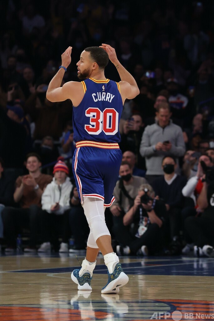 最終的にこの試合で5本の3ポイントを決めたカリーは、記録を2977本に更新している。チームも終盤にニックスを突き放して105-96で勝利し、戦績をリーグ最高の23勝5敗に伸ばしている。(c)AFP