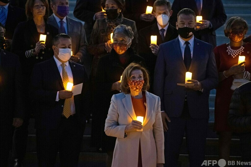 民主党のナンシー・ペロシ(Nancy Pelosi)下院議長やチャック・シューマー(Chuck Schumer)上院院内総務、共和党のケビン・マッカーシー(Kevin McCarthy)下院院内総務らは14日夜、連邦議会議事堂の階段で黙とうをささげた。