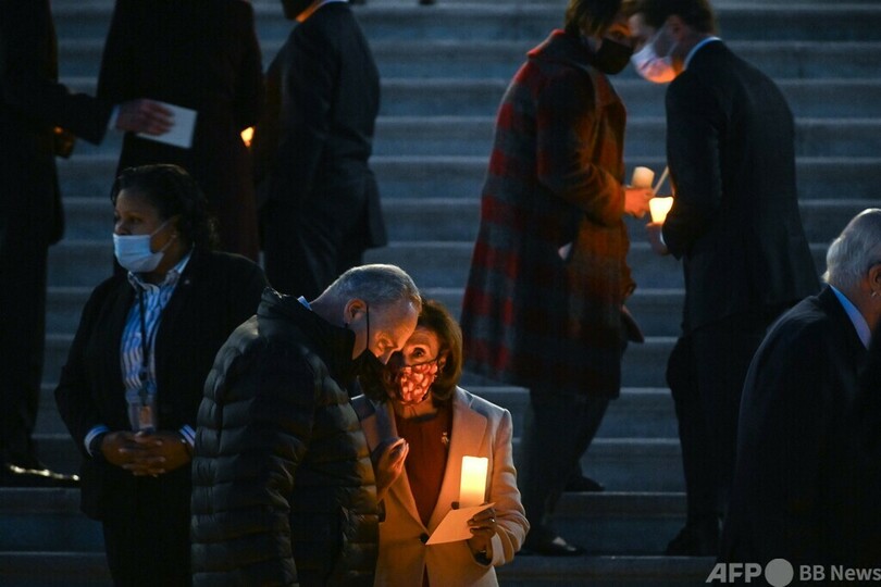 民主党のナンシー・ペロシ(Nancy Pelosi)下院議長やチャック・シューマー(Chuck Schumer)上院院内総務、共和党のケビン・マッカーシー(Kevin McCarthy)下院院内総務らは14日夜、連邦議会議事堂の階段で黙とうをささげた。