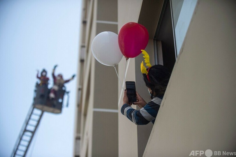 【12月15日 AFP】ペルーの首都リマで14日、サンタクロースがはしご車から、新型コロナウイルス感染症(COVID-19)と闘う子どもたちにプレゼントを渡した。