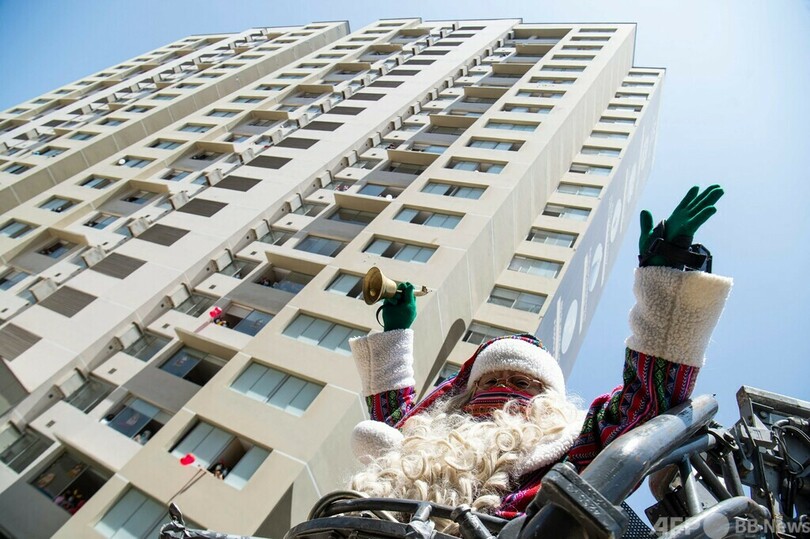 【12月15日 AFP】ペルーの首都リマで14日、サンタクロースがはしご車から、新型コロナウイルス感染症(COVID-19)と闘う子どもたちにプレゼントを渡した。