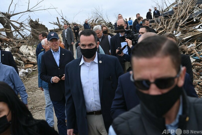 バイデン氏は濃紺のスーツにノーネクタイ、野球帽という服装で、人口約2500人のドーソンスプリングス(Dawson Springs)と人口約1万人のメイフィールド(Mayfield)を訪問。「被害の範囲と規模は想像を絶する」と述べた。