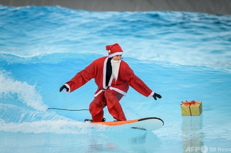 ニュース ライフ アルプスの波乗りサンタ スイス 2021年12月17日 15:22 発信地:シオン/スイス [ スイス ヨーロッパ ] このニュースをシェア ‹ › ❮ 6/13 ❯ スイス・シオンのサーフィン用プール「アライアベイ」で波に乗るサンタクロースの衣装を着たサーファー(2021年12月15日撮影)。(c)Fabrice COFFRINI / AFP 画像作成中 ! 【12月17日 AFP】スイスのアルプス(Alps)山脈に囲まれた町シオン(Sion)に15日、トナカイがあしらわれたサーフボードに乗りプレゼントを持ったサンタクロースが登場した。 サンタクロースの衣装を着たサーファーが波乗りに挑んだのは、人工サーフィン用プール「アライアベイ(Alaia Bay)」。この日の水温は0.6度だった。(c)AFP ライフ 一覧へ> メディア・報道関係・法人の方向け 写真・動画 購入のお問合せ>