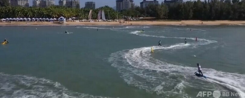 国家体育総局の関係者によりますと、スノーボードの夏の練習手段として、電動サーフボードの活用は国際的に通用しています。中国代表チームの選手たちは2018年から毎年夏、電動サーフボードを通じて技能訓練を続けているということです。(c)CGTN Japanese/AFPBB News