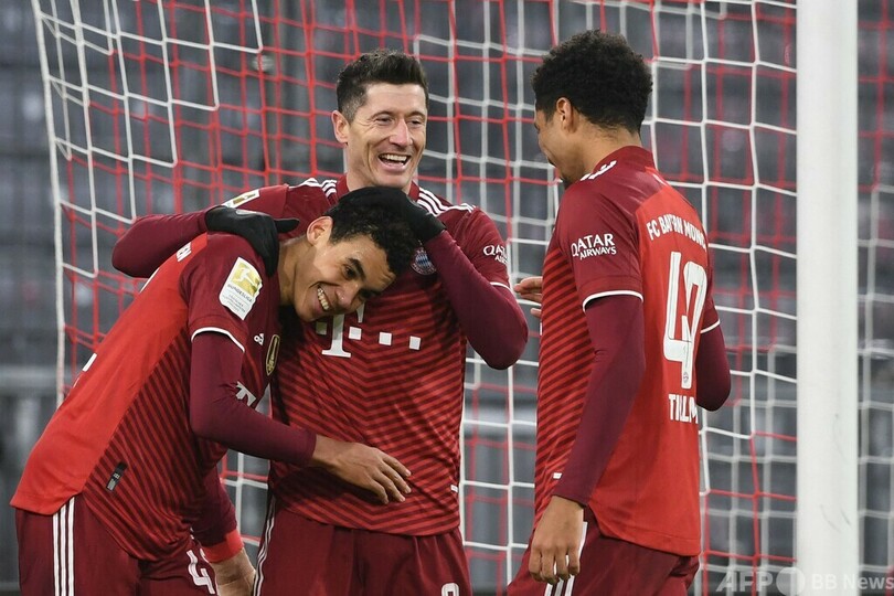 【12月18日 AFP】21-22ドイツ・ブンデスリーガ1部は17日、第17節の試合が行われ、バイエルン・ミュンヘン(Bayern Munich)は4-0でVfLボルフスブルク(VfL Wolfsburg)に勝利。ゴールを決めたロベルト・レワンドフスキ(Robert Lewandowski)、トーマス・ミュラー(Thomas Mueller)、ダヨ・ウパメカノ(Dayot Upamecano)はそれぞれが節目を祝った。