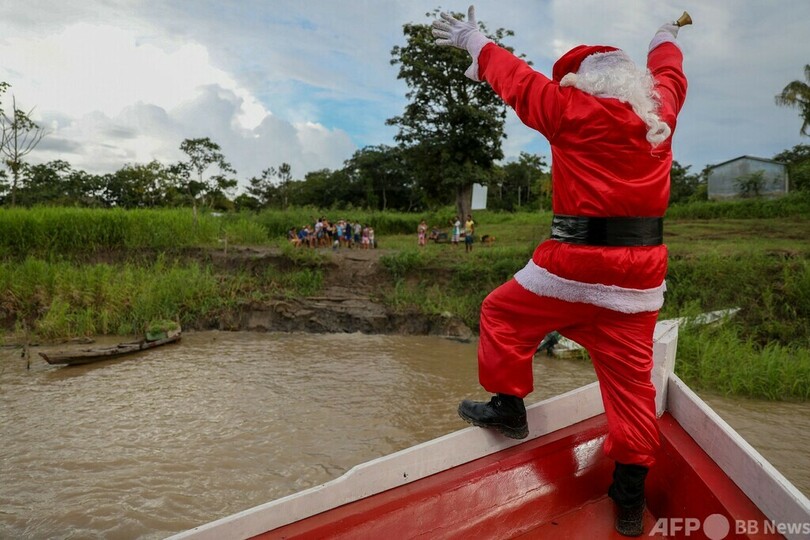 【12月21日 AFP】ブラジル・アマゾン川(Amazon River)沿いの町に18日、サンタクロースが船でやって来た。