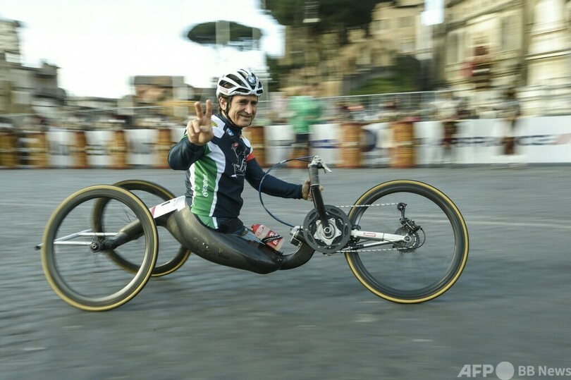 ザナルディは2001年、ドイツのラウジッツリンク(Lausitzring)で起きたレース中の事故で両脚を切断。その後はパラリンピック界屈指のアスリートとして活躍するようになり、2012年のロンドン大会と2016年のリオデジャネイロ大会では、それぞれ2個の金メダルに輝いた。(c)AFP