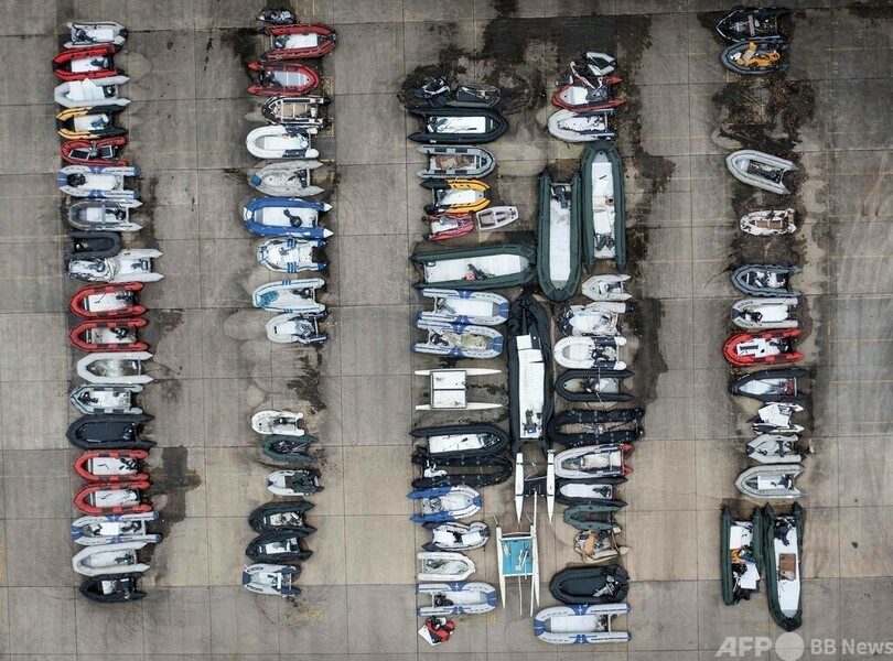【12月22日 AFP】英イングランド南東部沿岸のドーバー(Dover)の港湾局に、ボートがずらりと並べられている。