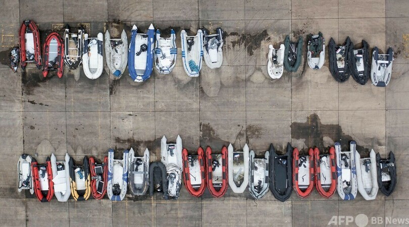 港湾局に並べられた移民のボート 英ドーバー
