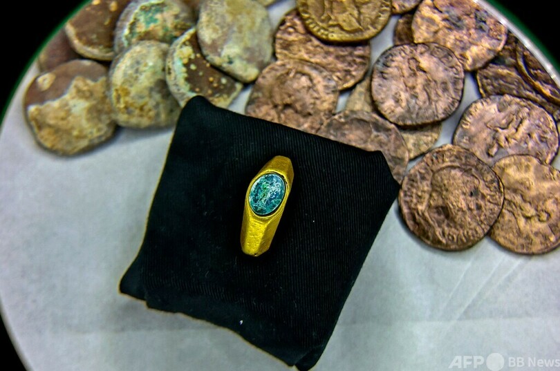 IAAによると指輪の他に、3世紀のローマ硬貨やワシのブロンズ像、仮面をかぶる人の像、鐘、器なども見つかったという。